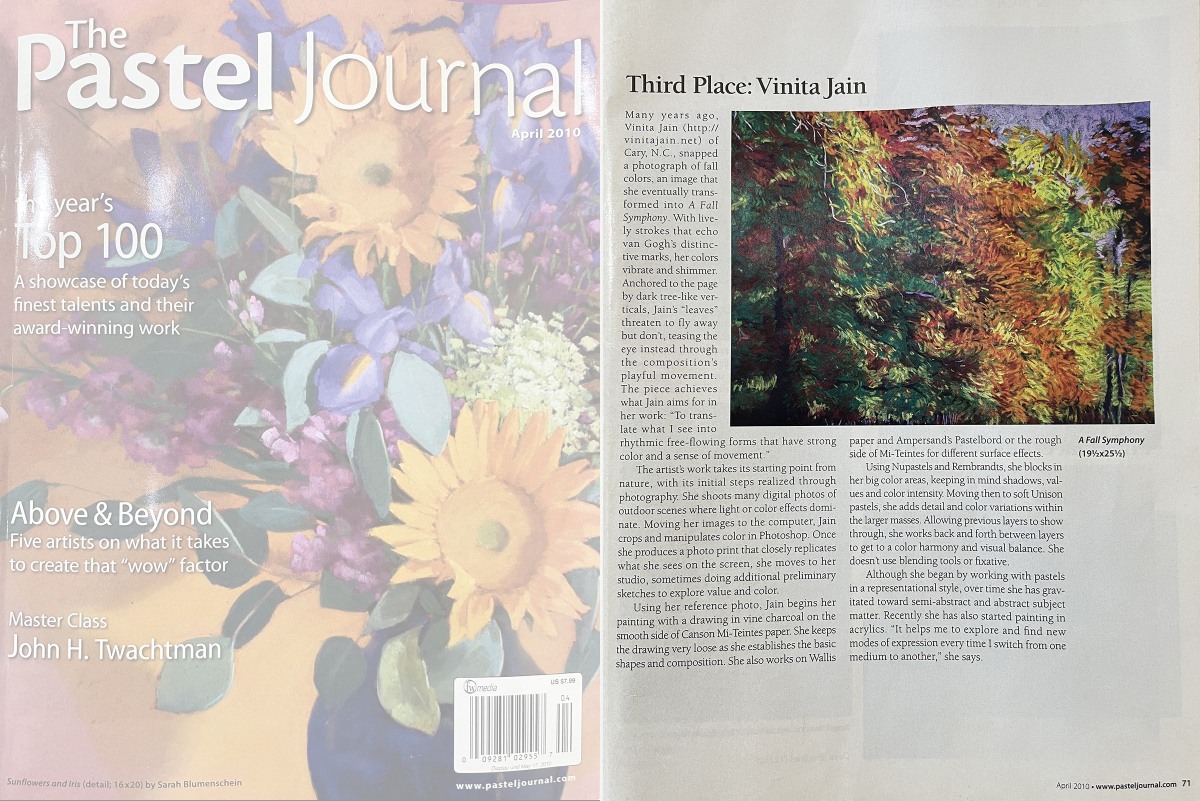 - Third place in the Abstract Category of the Pastel 100 competition of the Pastel Journal published in March/April 2010 issue.